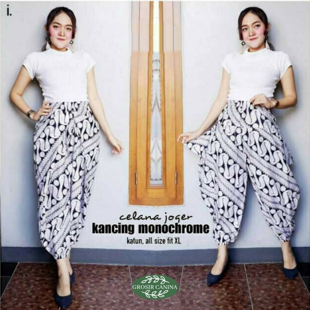 Harga Celana Wanita Joger Jogger Kancing Batik Monochrome Monokrom Bawahan Kebaya Modern Casual Formal Aladin