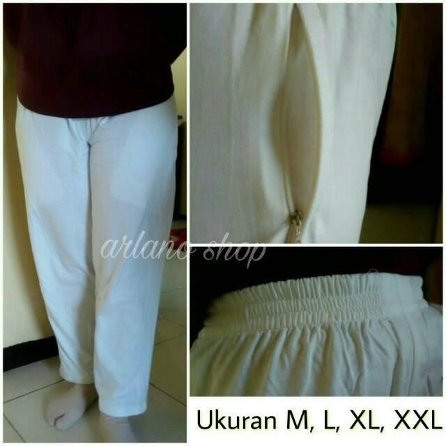 Celana panjang wanita putih haji umroh pengajian bahan bagus kantong resleting 2 kanan kiri