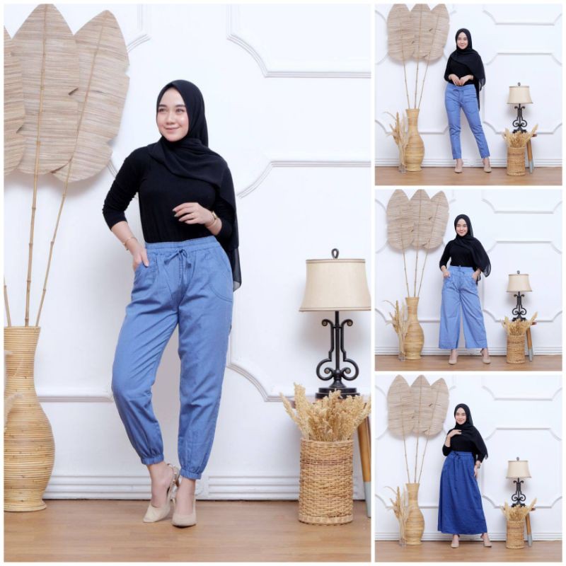 Bawahan Wanita Celana Kulot Joger Basic Boyfriend Murah model Kekinian Kain Soft jeans Greige
