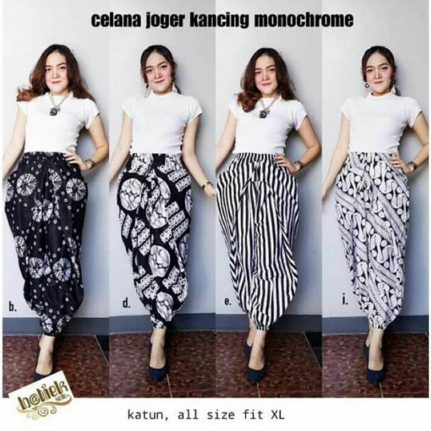 Celana Wanita Joger Jogger Kancing Batik Monochrome Monokrom Bawahan Kebaya Modern Casual Formal Aladin