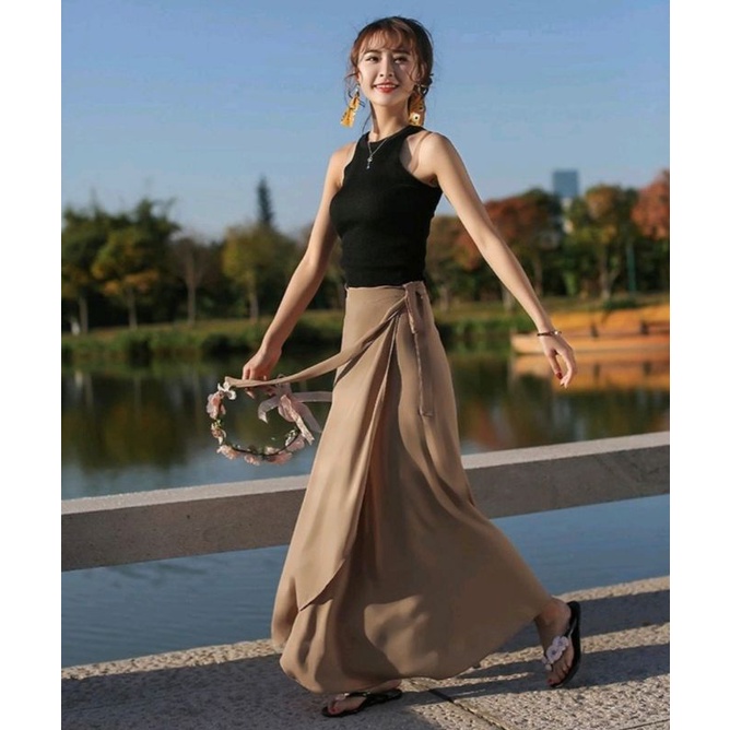 ROK STRAP ROK TALI SHAKILA ROK KOREA TALI STYLE ROK WANITA BAHAN SHAKILA STREAT ALL SIZE FIT TO XL BAWAHAN PANJANG KOREA LONG SKIRT STRAP POLOS