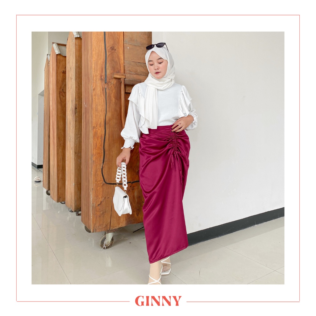Sri Skirt | Women's Modern Plain Drawstring Kebaya Skirt | Bawahan Rok Kebaya Kain Satin Serut Polos Wanita | GINNY
