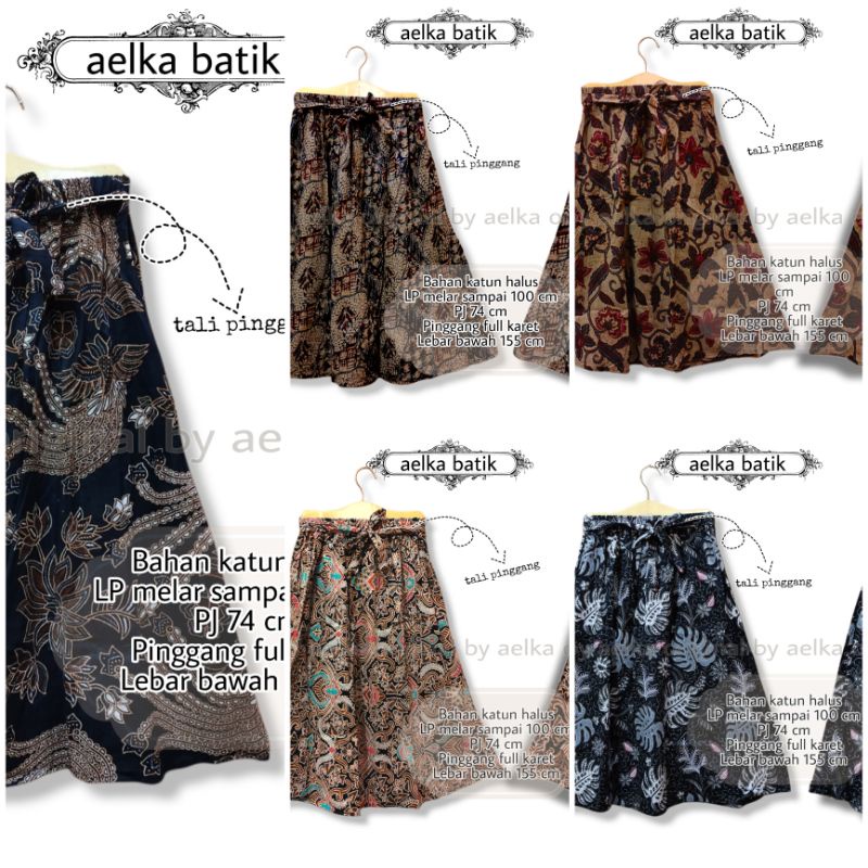 Rok batik pendek payung 7 8 pinggang karet tali modern jumbo wanita dewasa mayung terbaru premium murah kekinian selutut warna hitam Motif bunga