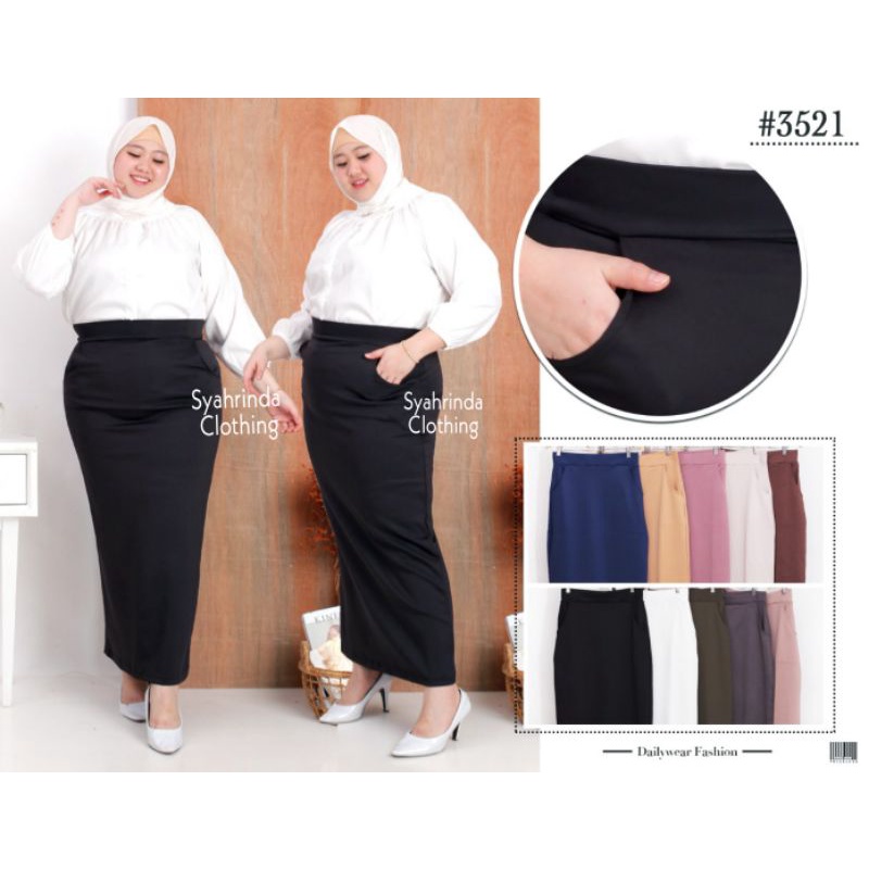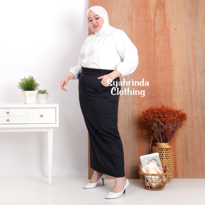 Harga Rok Span Jumbo Panjang Bawahan Kerja Polos Wanita Scuba Premium Bawahan Formal